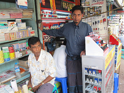 BEFORE THE COLONIAL ERA this busy street was a stretch of mud flats and the actual community was to the North. Today Maha Bandula Road is a dense traffic thoroughfare that reflects the changing fortunes of Myanmar. Vehicles clog the streets and the crowded sidewalks are an obstacle course of stalls selling everything from food through fruit to flashlights. Here you can experience bustle and activity with the accompanying symphony of dissonant sounds and the aromas of unfamiliar food smells and dense traffic exhaust.